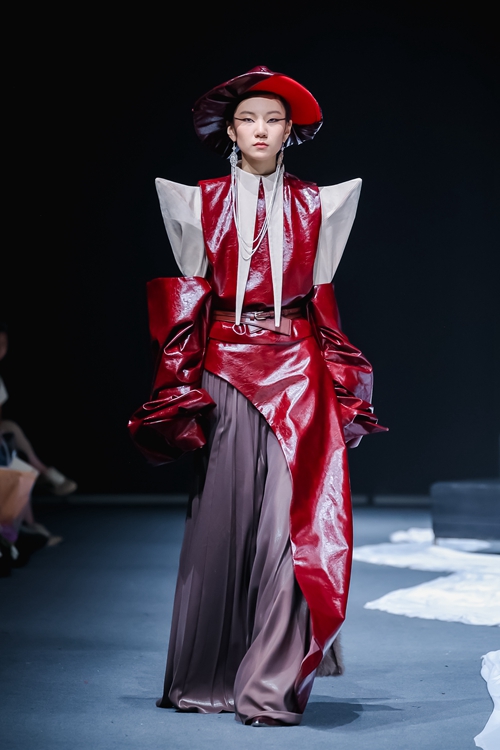 2022級服裝表演專業(yè)臧若含同學首次以編導(dǎo)身份負責了女裝創(chuàng)意組的燈光與音樂設(shè)計,以“起、承、轉(zhuǎn)、合”為敘事框架,用低頻電子樂鋪墊神秘感,以漸變紅光呼應(yīng)服裝結(jié)構(gòu)線條,為整場演出成功貢獻了獨到創(chuàng)意。