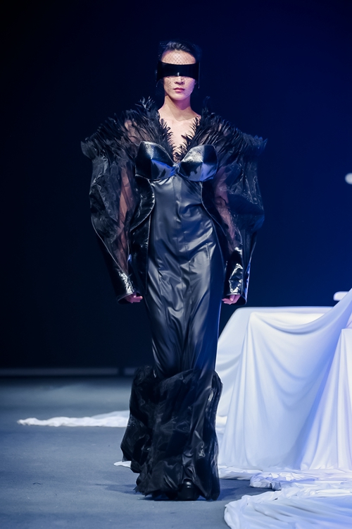 黑色主調(diào)系列運用硬朗剪裁與柔性面料的碰撞,可拆卸模塊設(shè)計既保持視覺沖擊力,又暗藏工業(yè)化生產(chǎn)接口,展現(xiàn)從概念到市場的轉(zhuǎn)化意識。