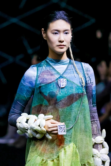 虛擬時尚專業方向畢業生積極與行業合作,共設置三個畢業設計主題——“未來閱讀與數字文旅”“未來時尚與數字人”“非遺數智編譯與未來時尚躍遷”。畢業生依托新質技術工具,持續挖掘傳統工藝,探索未來時尚商業價值模式,實現對未來生活的數字化暢想。