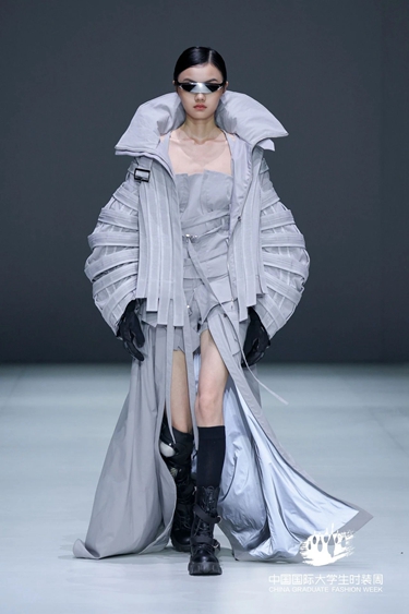 展演現(xiàn)場(chǎng),合創(chuàng)舞臺(tái)與影像燈光交相呼應(yīng),每組作品在燈光下迸發(fā)獨(dú)特魅力,既凸顯設(shè)計(jì)細(xì)節(jié),又營(yíng)造出強(qiáng)烈的藝術(shù)氛圍。觀眾通過(guò)服裝,感受到設(shè)計(jì)師對(duì)人民生活、山河大地與時(shí)代精神的深情致敬,也見(jiàn)證青年一代在國(guó)家文化自信和工業(yè)創(chuàng)新雙輪驅(qū)動(dòng)下的創(chuàng)造力與責(zé)任感。