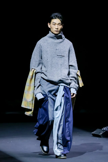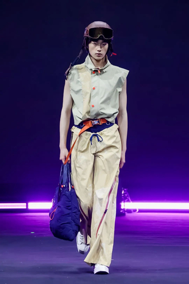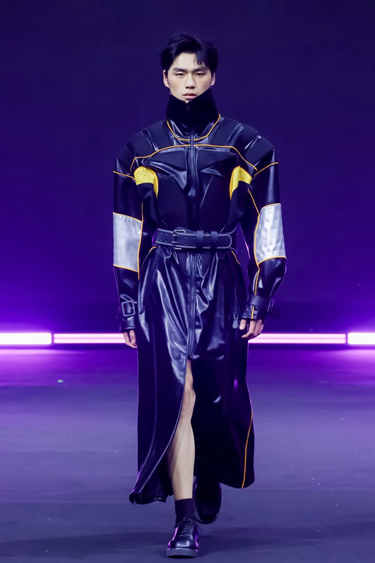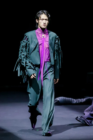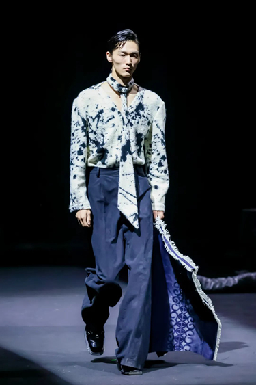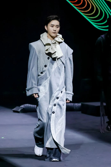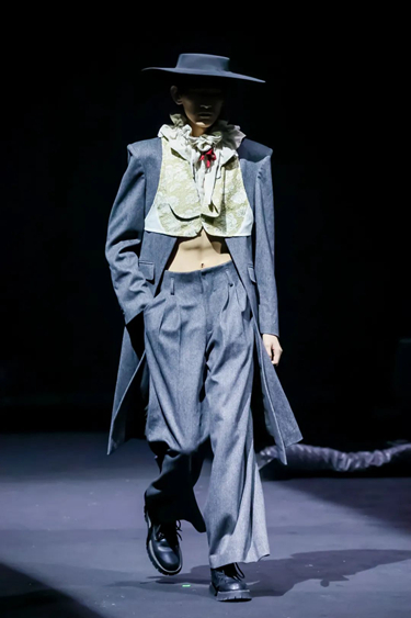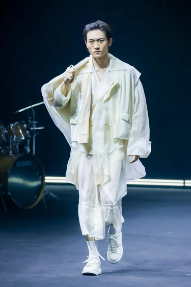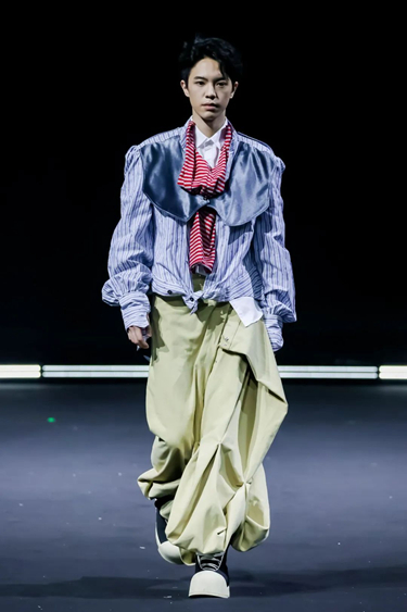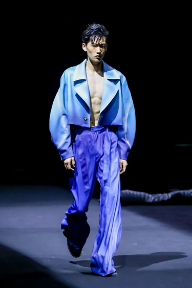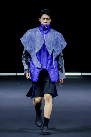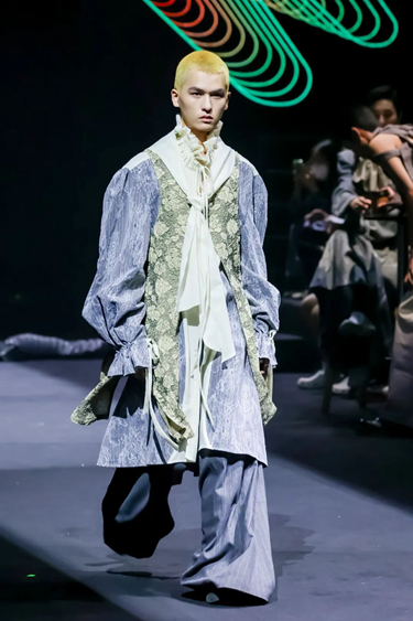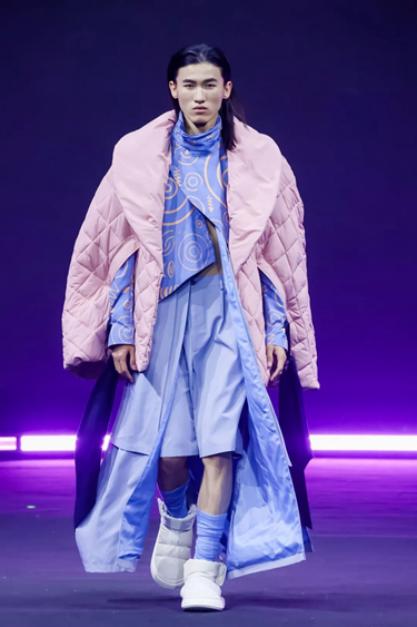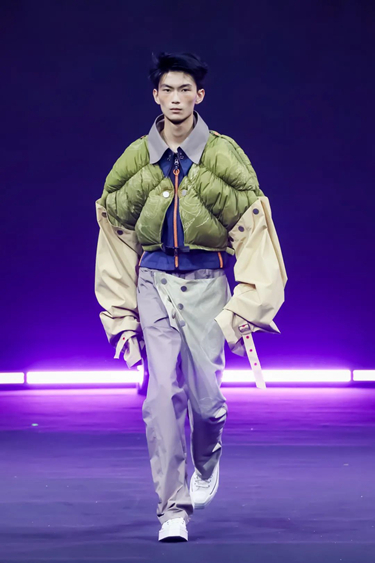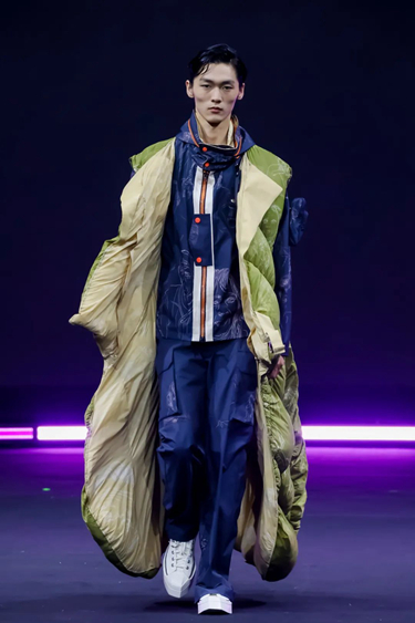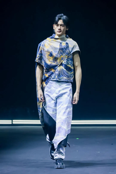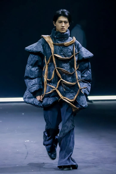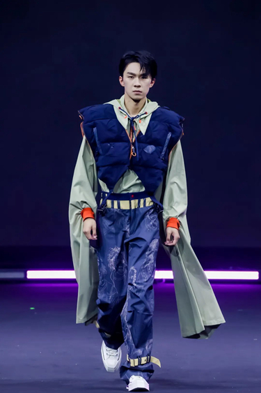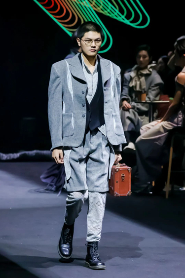 開(kāi)幕儀式后,集中展示了男裝設(shè)計(jì)方向43位新銳設(shè)計(jì)師120套服裝作品。男裝秀以“行循自然”為核心,呈現(xiàn)主題“拾伍”,即男裝專(zhuān)業(yè)成立十五周年 。“拾”代表了認(rèn)知自我、找尋自我的過(guò)程以及對(duì)未來(lái)的展望,"拾伍"作為一個(gè)文化符號(hào),反映出中國(guó)傳統(tǒng)文化中對(duì)數(shù)字的審美,蘊(yùn)含著豐富的文化內(nèi)涵和哲學(xué)思考。