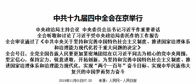 (2019年10月31日中國共產黨第十九屆中央委員會第四次全體會議通過)