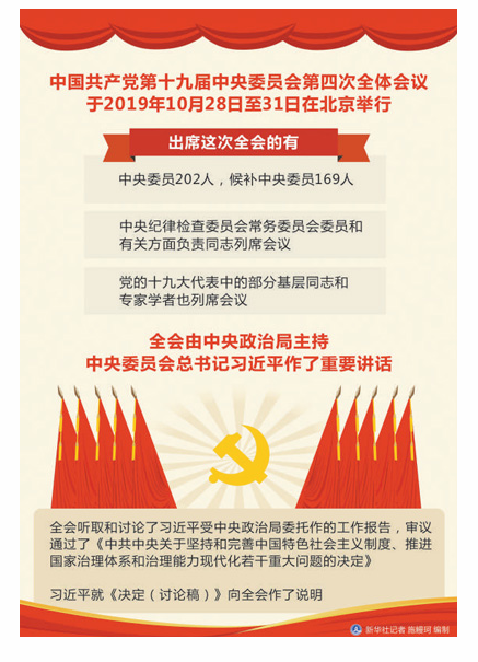 中國共產黨第十九屆中央委員會第四次全體會議,于2019年10月28日至31日在北京舉行。
