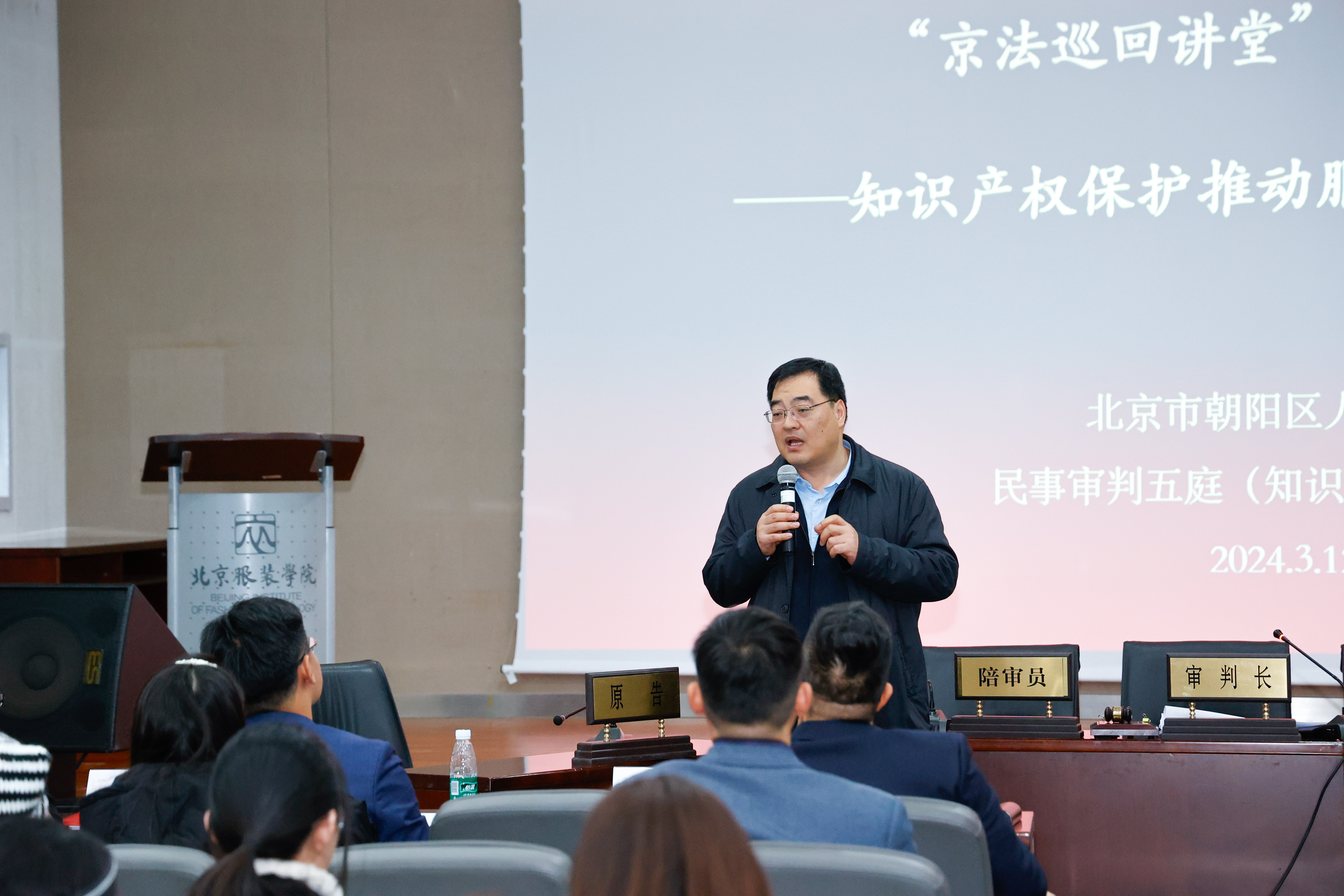 為加強學校法治宣傳教育,提高師生知識產權保護意識,3月12日下午,北京服裝學院與朝陽區人民法院在櫻花園校區藝術樓二層報告廳共同開展“巡回審判進校園”活動。
