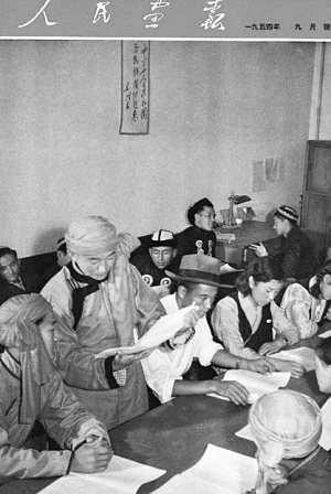 1954年6月,毛澤東主持召開(kāi)中央人民政府委員會(huì)第三十次會(huì)議,通過(guò)《中華人民共和國(guó)憲法草案》和關(guān)于公布憲法草案的決議,要求全國(guó)地方各級(jí)人民政府立即在人民群眾中組織關(guān)于憲法草案的討論,發(fā)動(dòng)人民群眾積極提出修改意見(jiàn)。6月16日,《人民日?qǐng)?bào)》刊登了憲法草案全文并發(fā)表了社論號(hào)召開(kāi)展廣泛討論。一場(chǎng)轟轟烈烈的憲法草案討論隨即遍及全國(guó)。“新中國(guó)第一部憲法草案”一時(shí)變成街頭巷尾的熱門話題,參加討論的人數(shù)達(dá)1.5億,約占當(dāng)時(shí)全國(guó)總?cè)丝诘乃姆种弧?/p>