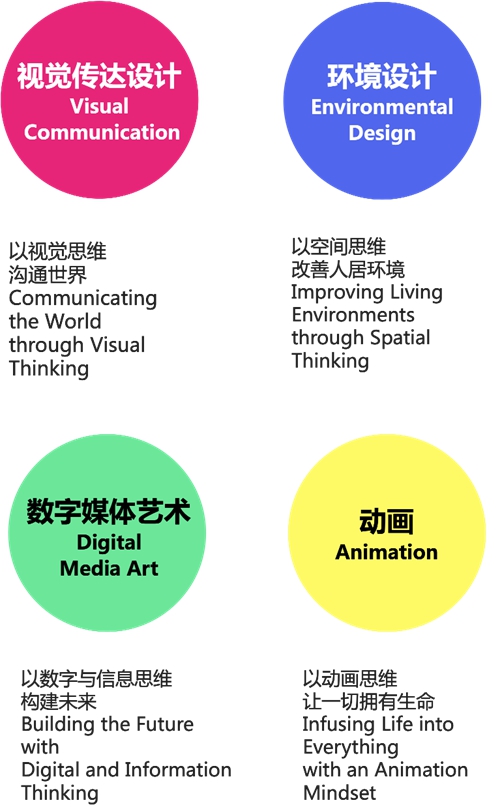 藝術設計學院現有視覺傳達設計、環境設計、數字媒體藝術、動畫四個本科專業,各專業均為國家級一流專業建設點。學院擁有設計學一級學科碩士點,為北京市高精尖重點建設學科,擁有設計、機械專業碩士學位,面向全國招收碩士研究生。設計學在教育部第五輪學科評估中取得重大突破,博士點申報取得歷史性進展。