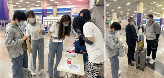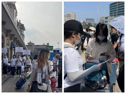 北京西站的老師和志愿者們在為新同學答疑解惑