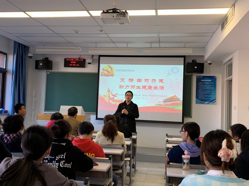 首先由李飛躍介紹了本次支部共建活動的主題以及立意。隨后,衛生所高老師從兩大部分進行講解。第一部分明確健康行為的概念應該是預防醫學的范疇,健康行為包括6點,即日常健康行為、避開有害環境、保健行為、戒除不良嗜好、預警行為、求醫行為;第二部分著重講不良的個人行為及社會行為對健康的影響,包括7種行為:飲酒、性行為、睡眠、飲食習慣、運動習慣、溝通、藥物濫用。