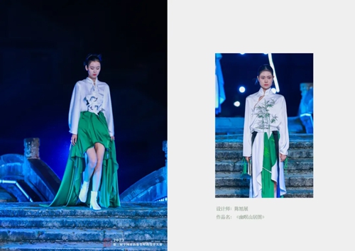 陳旭展用北服2024屆研究生畢業作品展的主題“以藝載道”來概括自己的研究生生活。他會去各種類型的博物館、美術館“尋寶”,也會現場感受中國國際時裝周、北京時裝周等時尚活動,使他不斷地獲得設計靈感、發現設計元素。陳旭展經常帶著設計作品參加各地時裝周,他堅信作品是對生活態度的表達。“經常通宵改服裝設計稿,還得動手縫紉、立體裁剪,衣服做出來之后要制版、找模特試穿、拍片、修圖、調整……。” 在北服求學的時光里,陳旭展被大峪中學聘請參與“琉光峪彩”低碳環保服裝服飾項目的服裝設計制作課程、排練秀演工作。他分享道:“大家往往覺得模特走秀光鮮亮麗,其實在背后,相關專業學生付出了很多心血。哪怕一個面料選不對,或是對穿著效果不滿意等,都要進行反復修改。伴隨著走秀音樂的響起,看著自己設計的服裝在眾人面前展示,心底的自豪感會油然而生,我想這就是努力的意義。”
