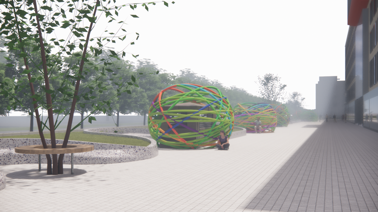 設計說明:如同編織針法數據庫,多彩的金屬管展示藝工融合,科技未來。