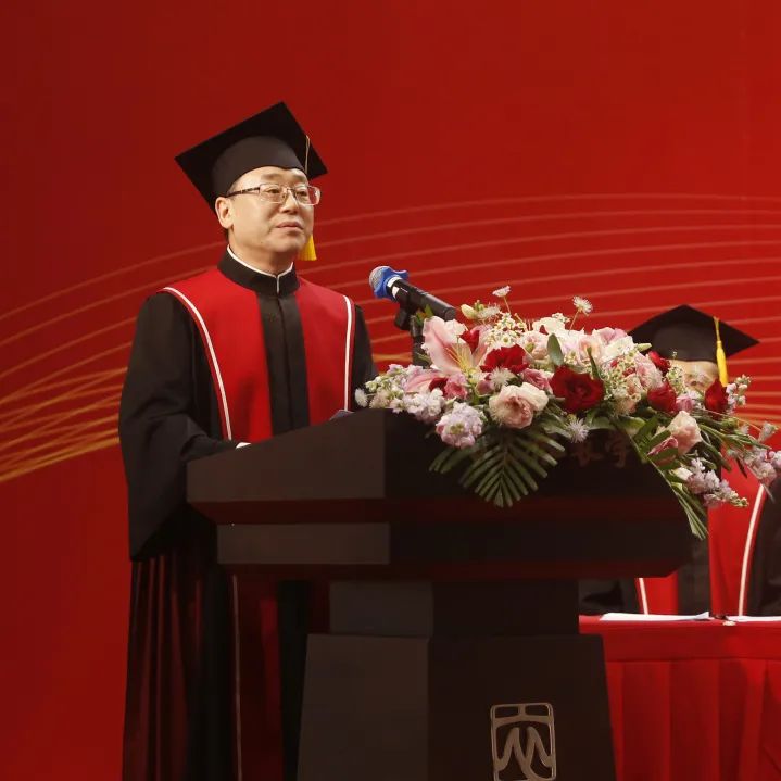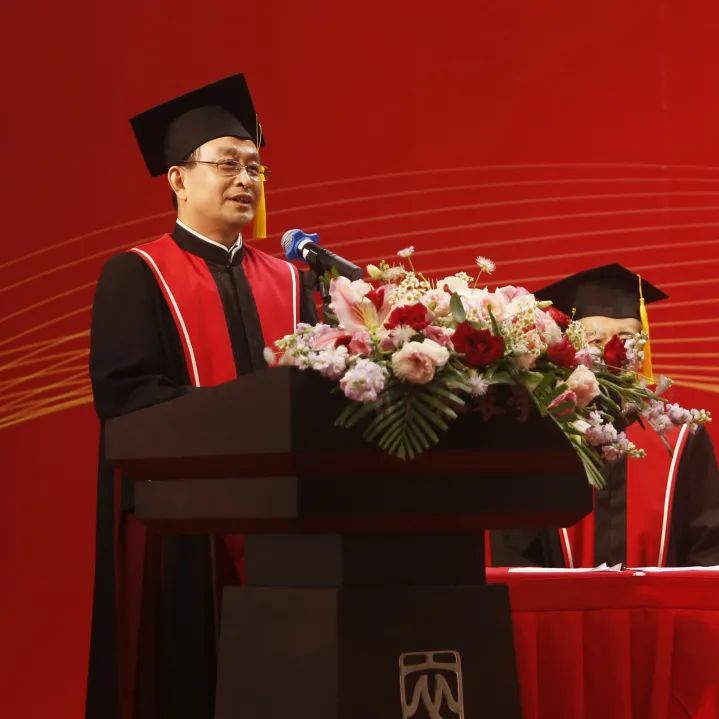 典禮最后,院長賈榮林教授為畢業生們送上殷殷囑托和深深祝福。他向畢業生圓滿完成學業表示祝賀,向辛勤付出的老師和畢業生親友,表示衷心的感謝!他首先回顧了學校幾年來在“以藝為主,服裝引領,藝工融合”的辦學特色下,建設高水平特色型大學所取得的成績,這是屬于每一個北服人的榮光!面對百年變局和疫情交織的復雜形勢,他向畢業生提出三點希望:一是變中求進,堅定信心;二是志存高遠,追求卓越;三是自律自省,愛人愛己。賈榮林院長希望畢業生們繼承和發揚北服學子奉獻國家、勇擔重任、與美同行的光榮傳統,不斷追求美、發現美、創造美和傳播美,堅持德智體美勞全面發展,努力成為可堪大用、能擔重任的棟梁之才!