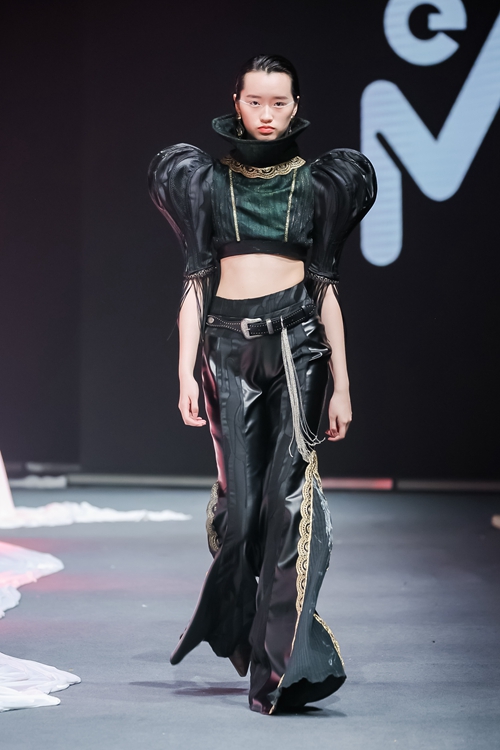 黑色主調系列運用硬朗剪裁與柔性面料的碰撞,可拆卸模塊設計既保持視覺沖擊力,又暗藏工業化生產接口,展現從概念到市場的轉化意識。