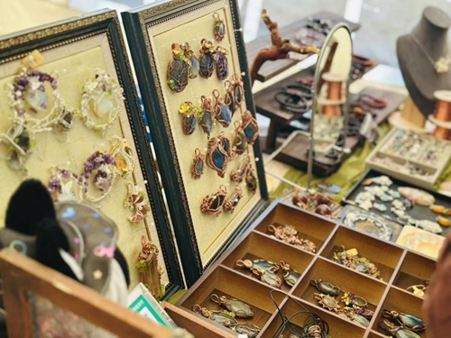 市集展售作品超千件,作品涉及服裝服飾、箱包皮具、布藝玩偶、瓷器陶器、文玩手辦、繪畫擺件等眾多品類,琳瑯滿目的原創作品吸引了眾多消費者。
