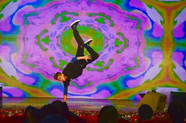 接下來的節(jié)目異彩紛呈:老歌合唱《大約在冬季》仿佛讓觀眾穿梭時(shí)光,一起走進(jìn)那單純、美好又令人無限向往的舊時(shí)光里;啦啦操舞蹈表演《Timber》婀娜多姿、青春動(dòng)感,淺粉色的衣裙如展翅的蝴蝶,飄飛在流光溢彩的舞臺(tái)之上,寄托了北服學(xué)子對(duì)新一年的祝福與展望;小品《兄弟別鬧》在讓人忍俊不禁的同時(shí),展示出同窗間那份深深的友誼,給觀眾帶來了視覺沖擊和聽覺震撼;北校區(qū)中國傳統(tǒng)文化社的女孩們將精美的古裝華服與醉人的古典樂器相結(jié)合,踏歌而舞,為觀眾帶來一曲古典舞蹈,古樸的漢服,優(yōu)美的身姿,帶領(lǐng)觀眾身臨“起舞踏春弄朝歌”的場(chǎng)景之中;歌舞劇《Monica》用幽默風(fēng)趣的舞姿將一首首90年代的粵語歌曲組合串燒,為現(xiàn)場(chǎng)觀眾帶來一場(chǎng)聽覺的盛宴;歌曲串燒《We Found the Love》,音樂旋律時(shí)而歡快、時(shí)而舒緩,躍動(dòng)的音符縈繞在現(xiàn)場(chǎng)的每一個(gè)角落,為觀眾帶來夢(mèng)幻般的感受以及青春的朝氣和活力。北京服裝學(xué)院北校區(qū)青年志愿者協(xié)會(huì)的成員在寒冷的冬夜帶來溫暖感人的話劇表演《不孤單》,以常去太陽城慰問孤寡老人們的經(jīng)歷和靈感演繹了這臺(tái)感人至深的話劇,不少觀眾在觀看過程中已經(jīng)被感動(dòng)得落下淚來;街舞表演《西游記》更是別出心裁,動(dòng)感的音樂,酷炫的舞步,北校區(qū)街舞社的同學(xué)們?cè)谖枧_(tái)上揮灑著青春的汗水,釋放激情,張揚(yáng)個(gè)性;跆拳道社帶來了跆拳道表演,各色的腰帶,整齊劃一的動(dòng)作,矯健的身姿使人無法忘懷,描繪了北服學(xué)子的意氣風(fēng)發(fā)與颯爽英姿;相聲《我健哥》幽默風(fēng)趣,動(dòng)作滑稽搞怪,情節(jié)跌宕起伏,引得觀眾們爆笑連連,掌聲不斷;傳統(tǒng)舞蹈《美落子》隨著音樂的流淌,舞者手中的扇子依次打開,如次第綻放的花朵,美妙絕倫,淡雅高貴;大二、大三學(xué)生帶來的小合唱《澎湖灣》用穿透靈魂的聲音,串聯(lián)起一首首膾炙人口的旋律,讓在場(chǎng)觀眾眼前一亮,贊不絕口,大呼“專業(yè)”和“養(yǎng)眼”;朗誦《走進(jìn)新年的暢想》回顧過去一年中北校區(qū)、北京服裝學(xué)院、祖國的發(fā)展與累累碩果,展現(xiàn)了北服學(xué)子對(duì)未來的期望;舞蹈串燒《Young Girls》舞出了學(xué)子對(duì)生活的熱愛,讓整臺(tái)晚會(huì)熠熠生輝;最后的節(jié)目是教職工合唱《我相信》,老師們動(dòng)聽的歌聲將晚會(huì)推向高潮;北校區(qū)主任單兵老師送給北校區(qū)學(xué)子的新年寄語溫馨感人,寄語學(xué)生們?cè)诩磳⒌絹淼?span lang="EN-US">2016年砥礪奮進(jìn),用激情和汗水譜寫夢(mèng)想的新華章。