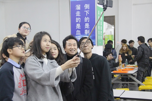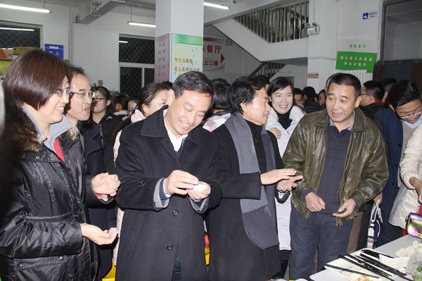 劉元風院長的到場吸引了不少“粉絲”,同學們紛紛掏出紙筆,希望劉院長為他們簽名留念,并祝福劉院長新年快樂。同學們盛上了剛剛出鍋、熱氣騰騰的餃子,請各位領導、老師們品嘗。不少同學更是迫不及待地拿出手機與校領導拍照,留下這難忘的時刻,激動之情溢于言表。材料科學與工程學院的一位同學說:“學校組織的這個活動非常好,在未進入大學前,每年元旦我們都與家人一起吃餃子,今天校領導、老師和我們一起包餃子、吃餃子,讓我們感受到了家一樣的溫暖,同學們之間的距離更近了,和老師們的感情也拉近了很多。”