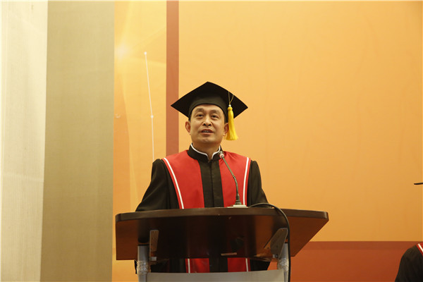 最后,院長(zhǎng)劉元風(fēng)教授講話。他代表學(xué)校向圓滿完成學(xué)業(yè)的研究生們表示熱烈祝賀,強(qiáng)調(diào)生命的意義在于體驗(yàn)、在于經(jīng)歷、在于領(lǐng)略。若要探求到生命的真相,須以心為眼,躬行探求。他希望畢業(yè)生秉承“弘毅日新衣錦天下”的校訓(xùn)精神;發(fā)揚(yáng)“求實(shí)”的作風(fēng)和精神,努力躬行,實(shí)現(xiàn)理想;持守“積跬步致千里,積小流成江海”的精神,從點(diǎn)滴小事做起,打好基本功。劉院長(zhǎng)期望畢業(yè)生堅(jiān)持踏實(shí)認(rèn)真的做事態(tài)度、嚴(yán)謹(jǐn)務(wù)實(shí)的做人風(fēng)格,以傳承民族服飾文化為己任,將自我價(jià)值的實(shí)現(xiàn)融入到民族文化振興的洪流中。