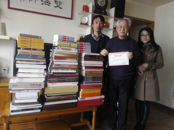 【新聞中心訊】3月15日下午,我校離退休工作處處長徐劍、圖書館館員焦海霞一同前往我校原藝術設計學院副教授黃紹勛老師家中,共同接受黃紹勛老師向學校圖書館捐贈的140余本自己珍藏多年的圖書。