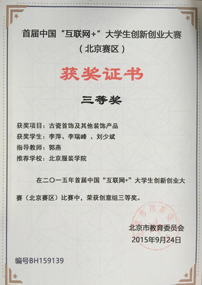 - 北服畢業生獲得首屆中國“互聯網+”大學生創新創業大賽北京賽區三等獎
