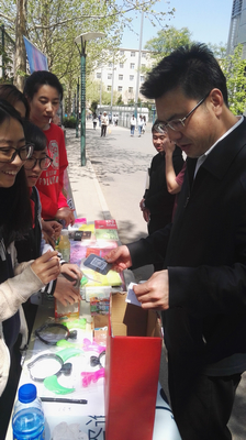 校黨委書記馬勝杰在心理文化節宣傳現場詳細詢問相關工作