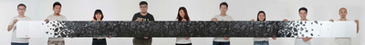 畫冊《閉上眼·深呼吸》由視覺傳達專業盧仿、攝影專業陳思穎、張靜雯、張晏瑋、產品設計專業陳宇翔合作完成,是整個深呼吸團隊的一次集體創作,用影像創作的方式展現了對污濁空氣的吶喊。20位參與活動的學生擔當模特,在攝影專業同學的帶領下,完成影像創作,后期由平面設計專業學生進行書籍裝幀并交付出版印刷。畫冊以中國傳統冊頁裝訂方式制作,8米長卷用一組煤塊影像串聯,并點綴以煤為筆寫下的感悟,一氣呵成。可以說是我校跨專業教學實踐的有益嘗試。