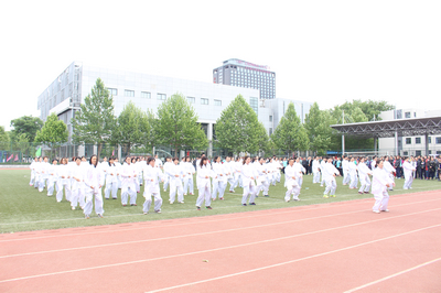 開幕式上,由學校各分工會近70名教職工代表組成的八段錦表演方陣,身著整齊的白色太極服,英姿颯爽地表演了八段錦養生操,場面壯觀,震撼人心。