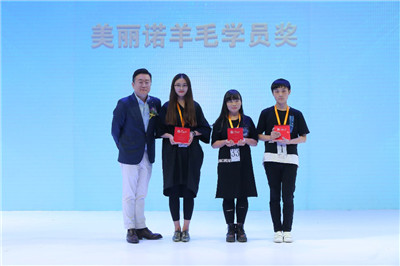 劉俊杰同學(右一)榮獲“國際羊毛局美麗諾羊毛學員獎”