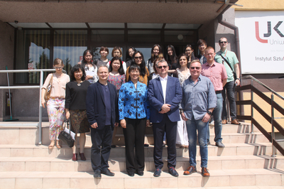 張正學老師與即將來我校學習的波蘭選手本次以黨委常委、副院長廖青為團長的波蘭訪問團,是繼2015年4月底波蘭凱爾采市市長一行成功訪問我校后,我校與凱爾采市的一次成功回訪。黨委常委、副院長廖青代表學校與波蘭凱爾采市政府、揚·科哈諾夫斯基大學簽訂了三方合作協議,在培養交流學生互派,接收獲獎選手在北服學習、擔任賽事評委和組織學生參賽等方面開展合作,雙方將在時裝大賽、設計作品聯合展演、學術交流、時尚及教育展覽等方面開展深入的交流合作。訪問團一行13人還參觀了揚·科哈諾夫斯基大學美術學院(Institute of Fine Art)和凱爾采市的設計中心(Institute of Design),學院豐富的硬件設備及富有創造力的作品帶給大家很多啟發。黨委常委、副院長廖青介紹了北京服裝學院的專業及學校基本情況。