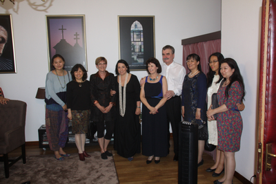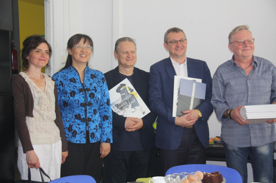黨委常委、副院長廖青與波蘭藝術設計學院院長交換禮品