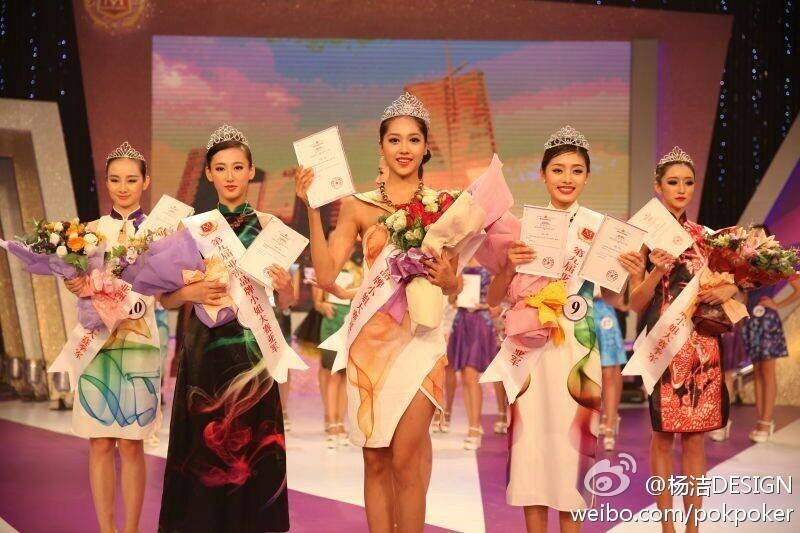 2013第8屆 亞洲品牌小姐大賽金銀銅佳麗均身著楊潔老師設計的創新旗袍