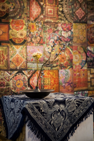 “匠心·拾遺”靜態展則陳列了非遺研修學員的100件作品,分為傳統印染、金屬手工藝兩大類別。前者展示了中國傳統四大防染技藝作品,包括夾纈、絞纈、蠟纈和藍印花布;后者展示了核雕、點翠、花絲鑲嵌、鐵畫等金屬手工藝制品。精細的做工、豐富的形態、古老的技藝被重新煥發活力,一件件精美的工藝品展現著不同民族的個性特征,相互迥異卻都奪目迷人。