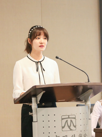 獲獎代表,校團委組織部部長張楚玥、第十七屆校學生會主席陳思言分別代表獲獎代表和新一任學生骨干發言。