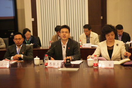 我校黨委書記馬勝杰致辭,黨委副書記艾麗主持會議