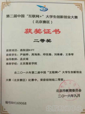我校燕銜泥BIFT項目榮獲二等獎,此獎項是該團隊暨全國第二屆“互聯(lián)網(wǎng)+”大學生創(chuàng)新創(chuàng)業(yè)大賽(北京賽區(qū))榮獲二等獎后,再次獲得的市級獎項。