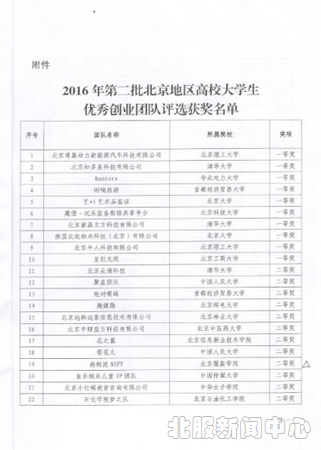 - 我校大學生創(chuàng)業(yè)團隊獲“北京地區(qū)高校大學生優(yōu)秀創(chuàng)業(yè)團隊”榮譽稱號