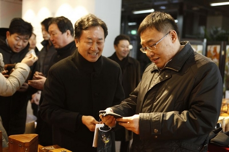 北京市西城區區委副書記、區長王少峰(中)觀看展覽