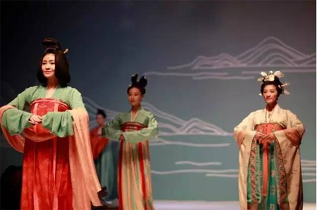 本次作品是以敦煌洞窟唐代壁畫供養人為原型,仿制6套傳統式樣的敦煌唐代女性服飾,盡可能忠實壁畫人物形象原貌,恢復使用傳統染、織、繡等手工技藝 ,再現盛唐時代中國傳統服飾的華麗絢爛的風貌。另外延伸設計創新作品24套,是以敦煌唐代藝術元素作為創作的主題,整體色彩借鑒楚艷近年來整理出的唐代傳統紅色體系,提煉唐代藝術元素,研究探索敦煌唐代元素在現代服飾的創新應用。楚艷老師表示:“研究唐代服飾,基本上一定會做敦煌這方面研究的。”