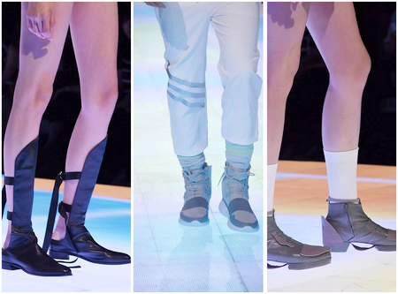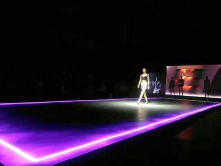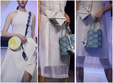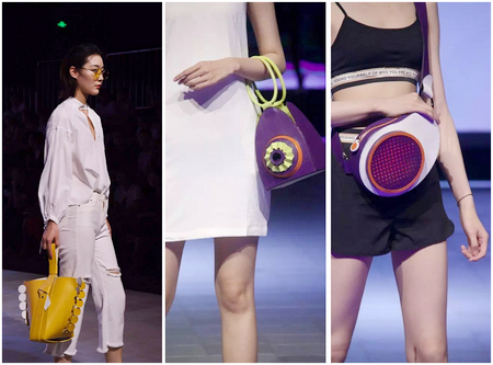 首飾展演風(fēng)格靜謐、舒緩,簡(jiǎn)潔的搭配輔以獨(dú)特的燈光,襯托出首飾的恬美與精致。箱包和鞋品部分的展演,有科技感十足的碰撞,也有精彩活潑、五彩繽紛的幻想。