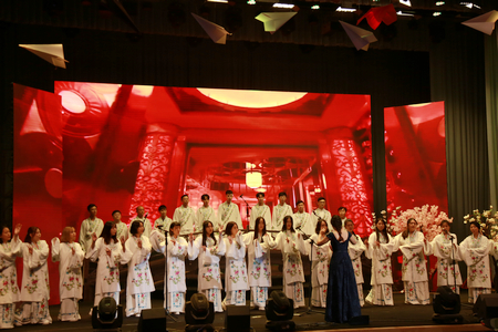第四篇章“前程莫負”表達了對于全體畢業(yè)生的美好希冀。一曲學生會成員帶來的歌曲串燒《憶時光》將全場氣氛推向了高潮,畢業(yè)生們放飛了手中象征著希望的紙飛機;畢業(yè)生代表帶來的朗誦《北服再見》讓人再次想起在北服學習生活的點點滴滴,成為了畢業(yè)生走向社會、服務大眾的暖心動力;歌舞《獻給櫻花的故事》則是帶動了全場的觀眾一起high起來。在全體工作人員的大合唱中,晚會完美地落下了帷幕。