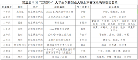 - 北服在第三屆中國“互聯網+”大學生創新創業大賽北京賽區獲佳績