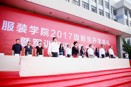 2017級全體本科新生在教官的指揮下,秩序井然地端坐在教學樓前,等待著開學典禮的開始。在莊嚴的國歌聲中,大會正式拉開帷幕。我校教師代表、中國十佳服裝設計師、服裝藝術與工程學院鄒游教授發言。鄒游老師表示,工作二十多年以來,他深刻感悟到在進行設計時,要不斷拓展自我認知境界。設計包括技術和美學的設計,設計者必須更深入地了解人類。他恭喜在座的新生來到北京服裝學院學習,并鼓勵大家用設計去助力改造世界。