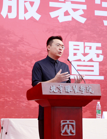之后,商務部國際商務官員研修學院副院長劉明哲講話,他祝賀新生來到北服這個美麗時尚的學校,期待新生們把學校推向更高更廣的平臺,同時,也希望新生們借助北校區這個國際化平臺將自己打造成國際化人才。