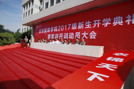 9月5日上午,北京服裝學院2017級本科生軍訓動員大會在北校區教學樓前隆重舉行。出席大會的有我校副院長賈榮林、承訓團團長李保華、校軍訓工作領導小組成員以及全體教官和2017級全體新生。大會由黨委學生工作部、武裝部部長張宏娜主持。