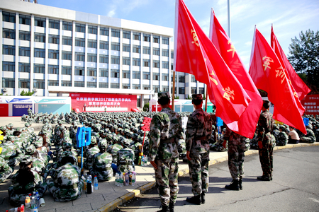 在雄壯的中國人民解放軍軍歌后,副院長賈榮林為參訓營授旗。接下來,李保華團長做開訓動員,他表示,軍訓是對大學生進行愛國教育和國防教育的重要舉措,是每個大學生的必修課,軍訓為以后的學習、生活和工作都奠定了基礎。希望新生們能充分認識到軍訓的重要性,做到一不怕苦二不怕累,以優異的軍訓成績向學校匯報。他鼓勵新生們能認真完成訓練科目,嚴格遵守規章制度,嚴格遵守作息時間,嚴格請銷假制度。