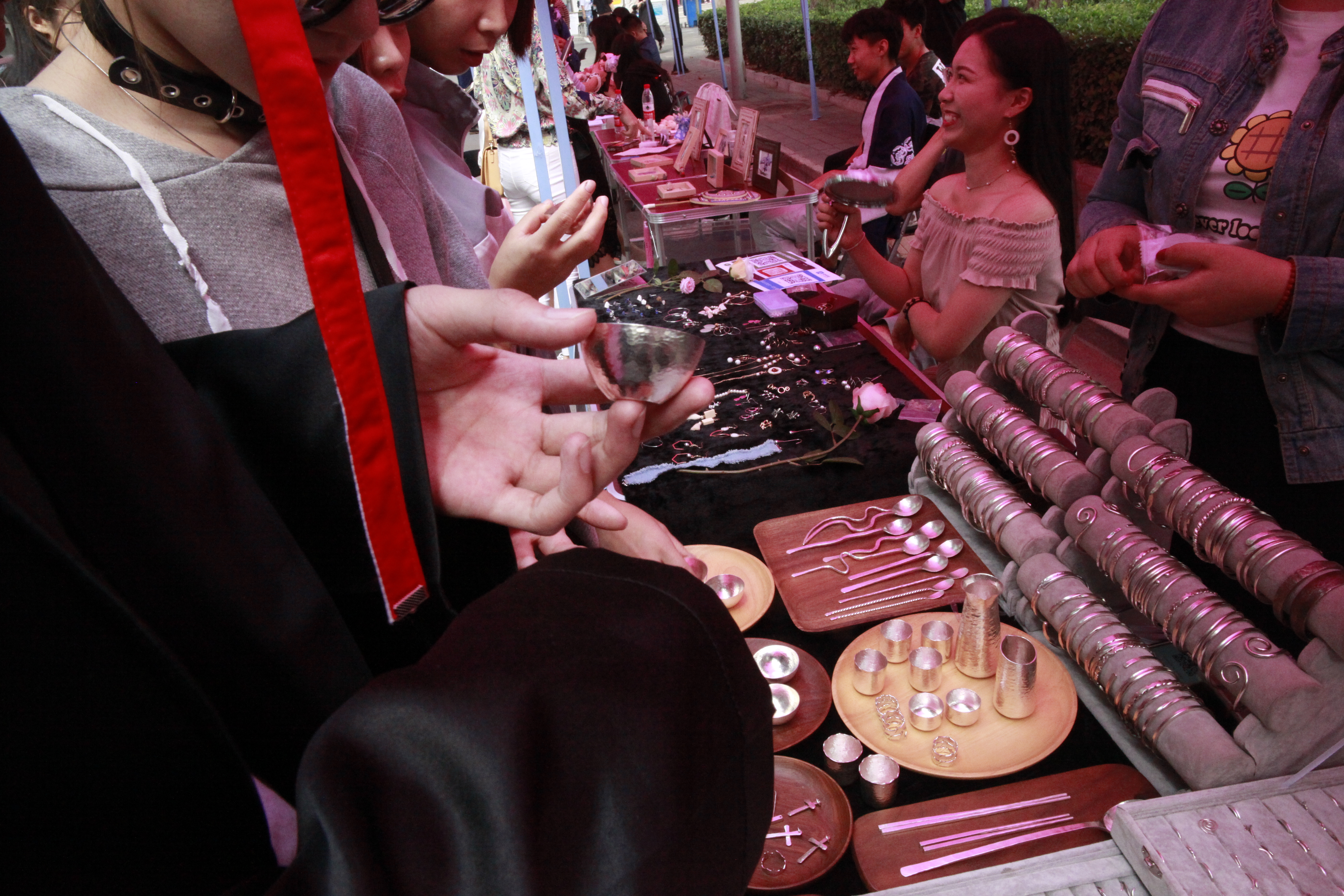 參與集市的不僅有各大高校的學生還有很多慕名而來的社會人士,媛斯雨工作室的周苪如表示:她在這里感受到十足的大學生創意思維和生活熱情。每個攤位都各有特色,在作品里能看到他們對事物不一樣的思維方式