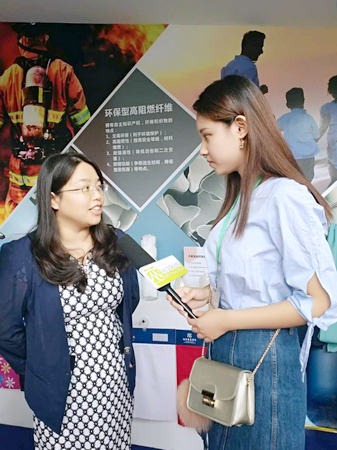 基礎教學部姜延老師說,本次辦展目的在于體現本校在自然科學領域所取得的成果,功能纖維和綠色纖維展區中,廢舊紡織品循環利用技術和產品從物盡其用和垃圾減量角度上來說意義深遠。