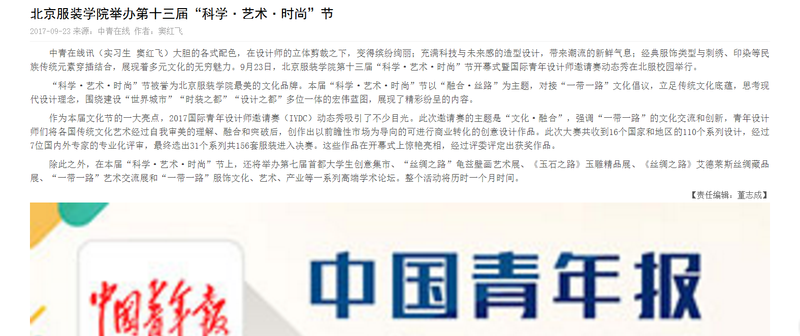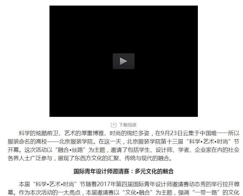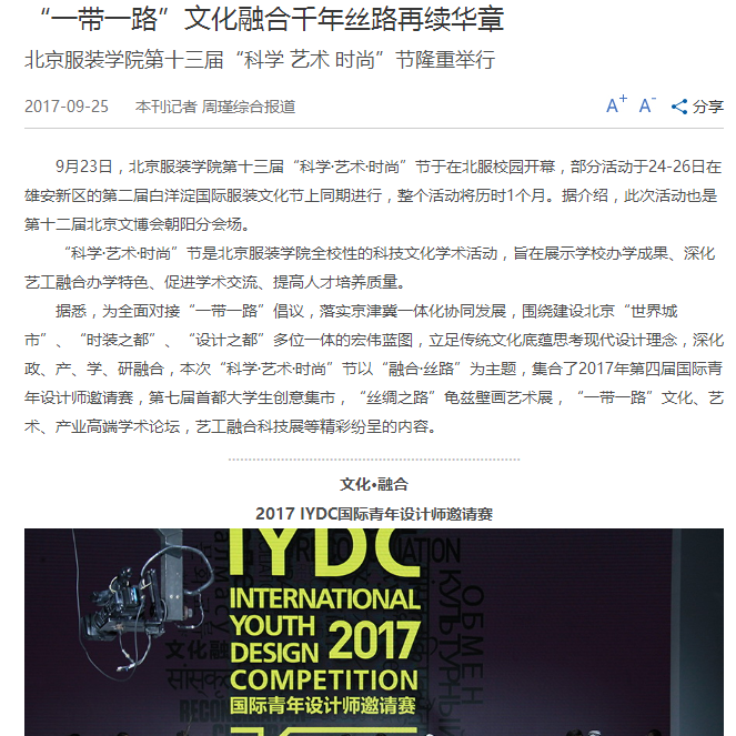 - 【置頂】多家媒體報道北京服裝學院第十三屆"科學·藝術·時尚”節