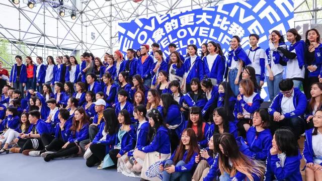 開幕式以一首特別的歌曲開場,五位畢業生帶來她們改編自小諾和她的樂隊的歌曲《幻想過的畫面》,也由此引出畢業生的集體亮相。作為北京服裝學院最年輕的二級學院,時尚傳播學院即將迎來它的第一批畢業生們。今天,2014級傳播、廣告、攝影、表演專業的130名畢業生,身穿學院為他們特別設計定制的,印有本次畢業設計主題 “LIFE LIVE LOVE比我們想象的更大”字樣的時傳藍衛衣合影留念。當主持人逐一念著他們的名字,時尚傳播學院的藍精靈們以活力四射、個性十足的姿態,走向這個舞臺,令中山裝廣場瞬間變成青春飛揚,詩意蔥蘢的藍色海洋。