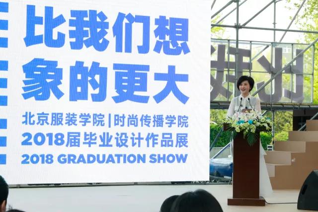 在如此熱烈的氣氛下,時尚傳播學院吳小莉院長走上前臺,為這些可愛的藍精靈們親切致辭:“時尚傳播學院畢業的每一個畢業生,都應該擁有獨立的思想,完整的價值觀和清晰的自我規劃。在人生的版圖中,做一個擁有自信和勇氣的指揮官。今天,我們想送給你的是一個時尚嘉年華,這也是送給全體畢業生的禮物。它是一個儀式,儀式最重要的功能就是紀念,今天過后,你會留下一個獨一無二的印記。今天,我們也送你一個比想象更大的舞臺。作為全球第一個時尚傳播學院,這個舞臺等待你用腳步去丈量它的寬闊,用鏡頭去呈現它的光芒,用文字去探索它的魅力,用智慧去策動它的力量。它將與你攜手,打造一個突破邊界、價值創新的文化藍海。我們相信,你們會用四年歷練的智慧為帆,力量做漿,逆流不悲,順流不亢,牢牢握住屬于自己的航向;以不斷的思考、創想和設計,以藝術家的身份去表現青春風采,去傳播時代之聲,去推動社會進步。明日可期,未來無限!愿你們創造出屬于自己的精彩。”