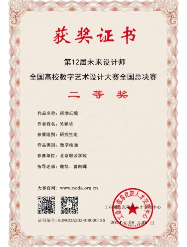 詹凱老師以人才培養為核心,因材施教,指導多名學生在第12屆未來設計師·全國高校數字藝術設計大賽全國總決賽、中國香港新銳當代設計獎、北京電影學院動畫學院獎等國內外賽事中取得優異成績。