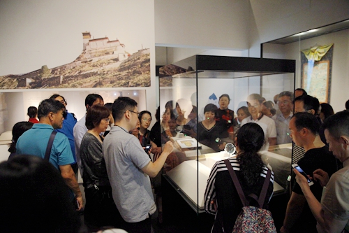 一件件精美的展品吸引著老師們的目光,大家不時駐足欣賞并拿出手機拍照。講解員專業而細致的講解,使老師們對西藏以及意大利文藝復興期間的歷史、文化發展等有了進一步的了解和直觀的印象。參觀結束后,中心組成員集體在首博牌樓前合影留念。